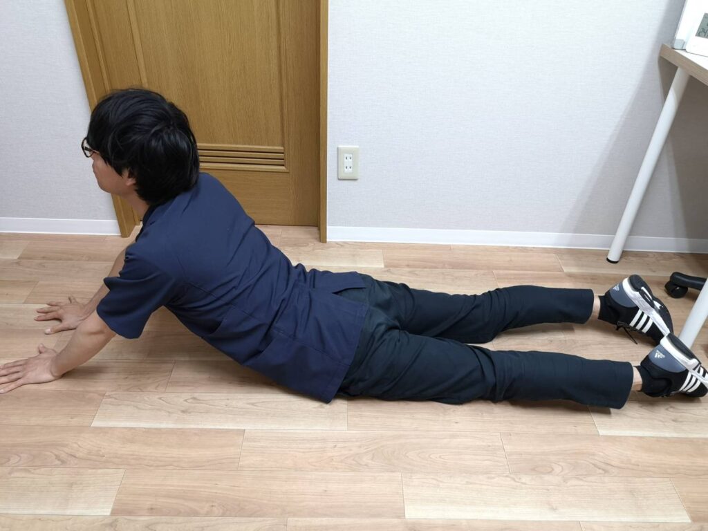 その時は、うつ伏せになるときに痛みが出ている側と逆に足を伸ばします。痛いほうに凸の字になる形です。
